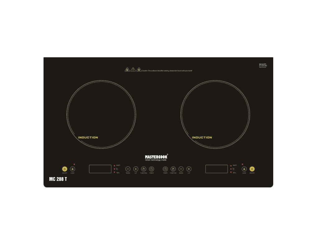 Bếp điện từ Mastercook MC 288T với 2 bếp từ, bep dien tu Mastercook MC288T được lắp mặt kính cao cấp SCHOTT - made in Germany, tổng công suất lên tới 4000w ( 2000x2 ) có thể đạt công suất tối đa cả 2 bếp cùng một lúc, bếp điện từ Mastercook MC 288T với bộ điều khiển cảm ứng dạng ẩn giúp bạn nấu ăn an toàn hơn
