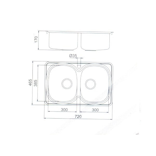 SH.2H.715 - sản phẩm chậu rửa Inox mang nhãn hiệu Sơn Hà - loại 2 bồn rửa, chiều dài chậu là 720 mm