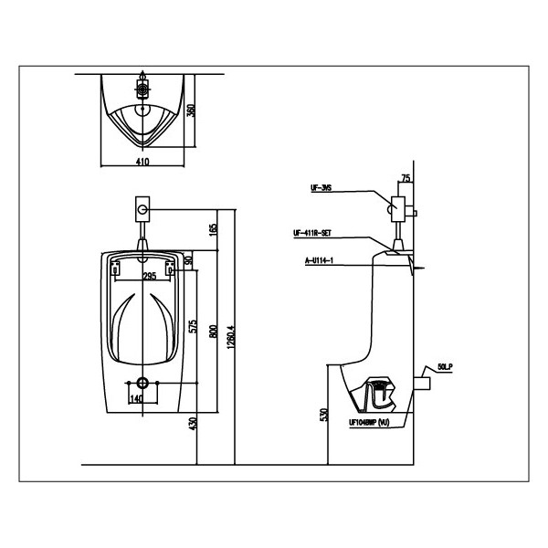 cao, có mặt...U411V là sản phẩm tiểu nam hiệu Inax dạng treo cỡ lớn. Sản phẩm đã bao gồm đầu phun rửa, gioăng cao su nối tường.